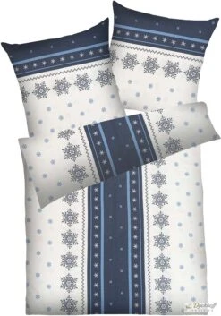 Dyckhoff Weichfrottier Bettwäsche Garnitur Schneeflocke mit Reißverschluss