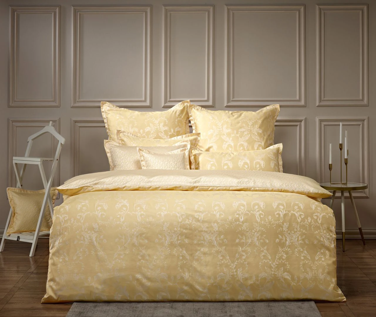 - Luxuriös und traumhaft schön: Mako-Brokat-Damast Wendebettwäsche mit kunstvoll gewobenem Ranken-Dessin auf der Vorderseite und einem Minimalmuster auf der Rückseite