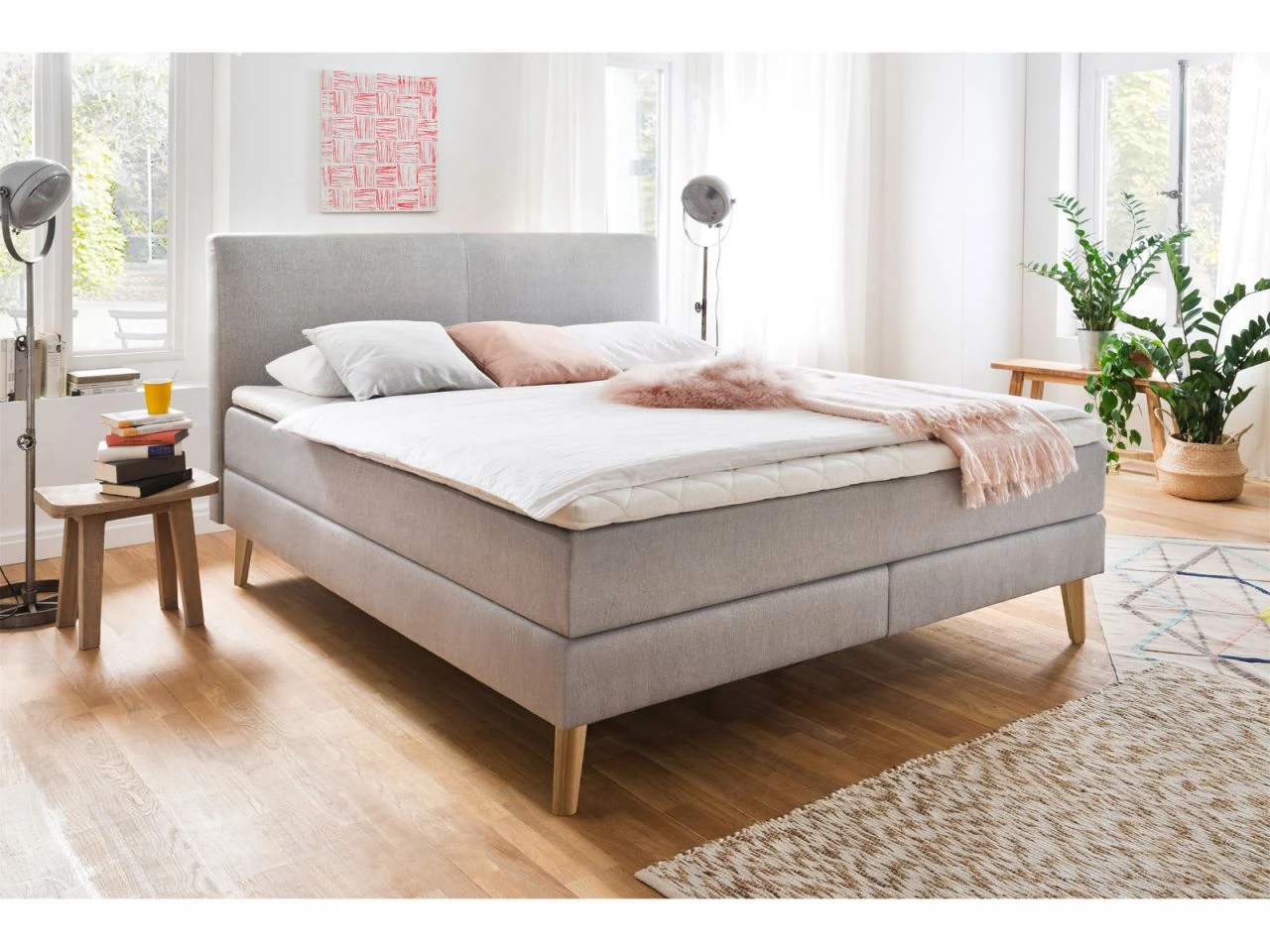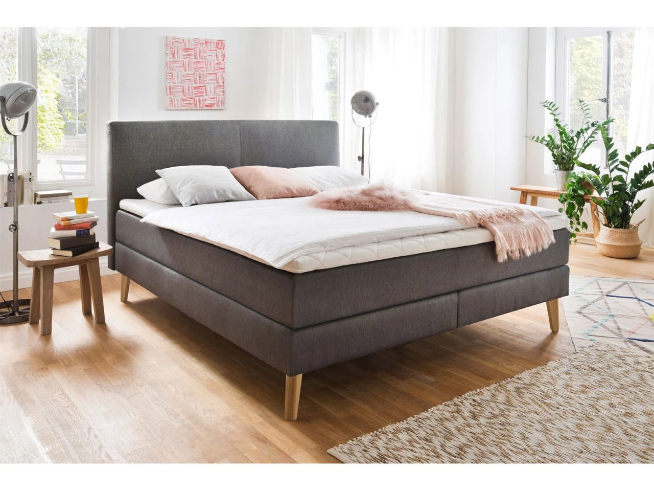 Boxspringbett – ohne Topper, Beimöbel, Bettwaren und Deko
