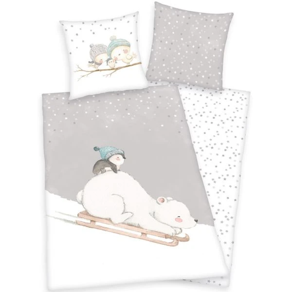 - Hier darf vom Schlittenfahren geträumt werden: Süße Kinder-Wendebettwäsche mit Eisbär, Pinguin und Vogelfamilie