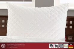 - Angenehm weiches Kopfkissen mit Baumwoll-Perkal-Bezug versteppt mit Schurwollvlies und Reißverschluss-Baumwoll-Innenkissen gefüllt mit Schafwollvlies